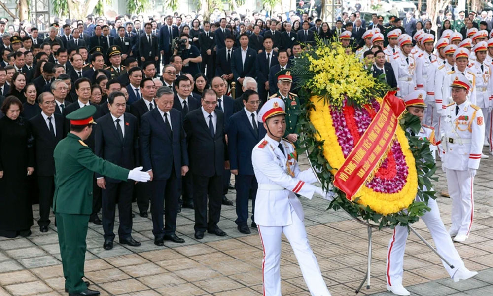 Với lòng tiếc thương vô hạn, Đoàn Ban Chấp hành Trung ương Đảng Cộng sản Việt Nam do đồng chí Tô Lâm, Ủy viên Bộ Chính trị, Chủ tịch nước Cộng hòa xã hội chủ nghĩa Việt Nam làm Trưởng đoàn vào viếng Tổng Bí thư Nguyễn Phú Trọng và chia buồn cùng gia đình.