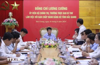 Ngày 26/6, tại Tỉnh ủy Bắc Giang, ông Lương Cường, Ủy viên Bộ Chính trị, Thường trực Ban Bí thư đã làm việc với Ban Chấp hành Đảng bộ tỉnh Bắc Giang về tình hình, kết quả công tác cán bộ và thực hiện nhiệm vụ chính trị của tỉnh Bắc Giang từ đầu năm 2024 đến nay.