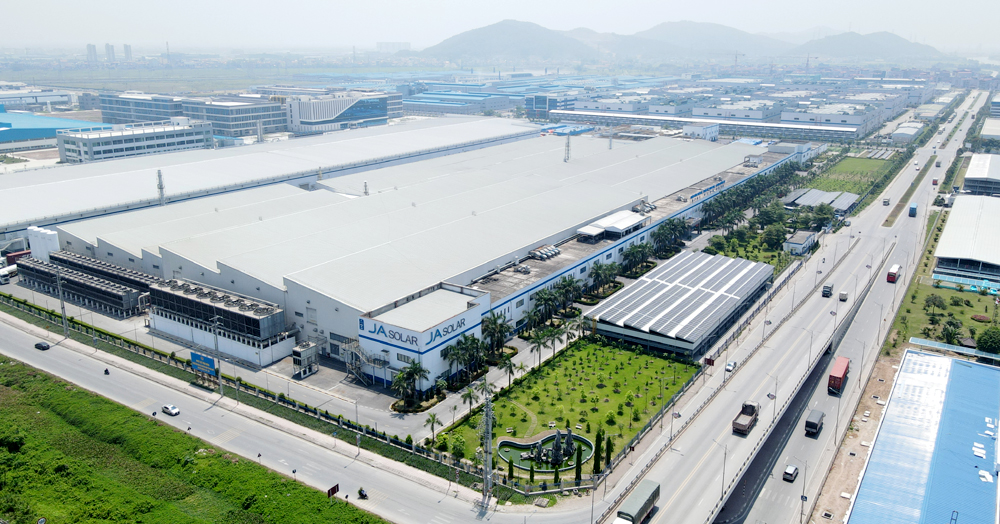 Hệ thống điện mặt trời được lắp trên nóc nhà xưởng Công ty TNHH Luxshare - ICT Vân Trung. |