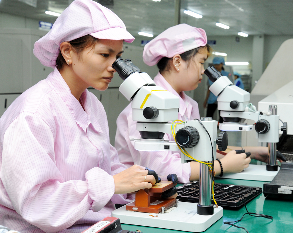 Sản xuất thiết bị điện tử tại Công ty TNHH Bao Sen Việt Nam (xã Song Khê - TP Bắc Giang). |