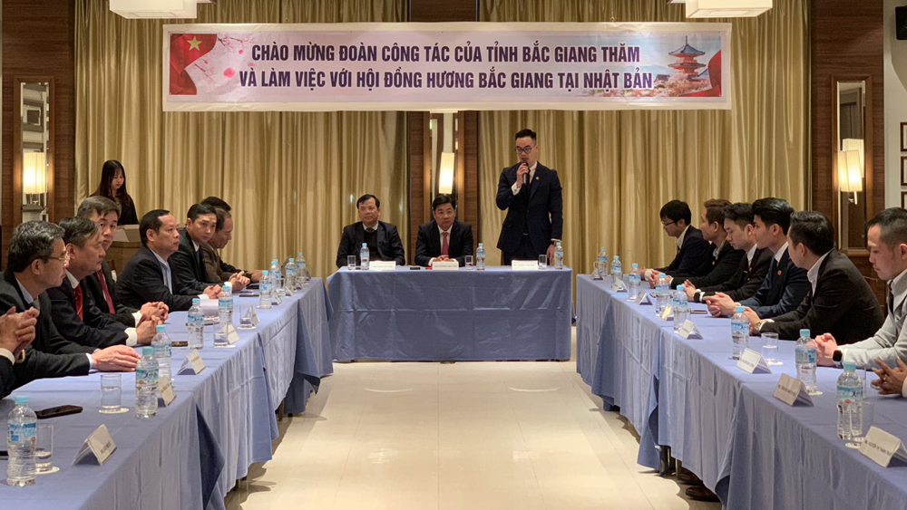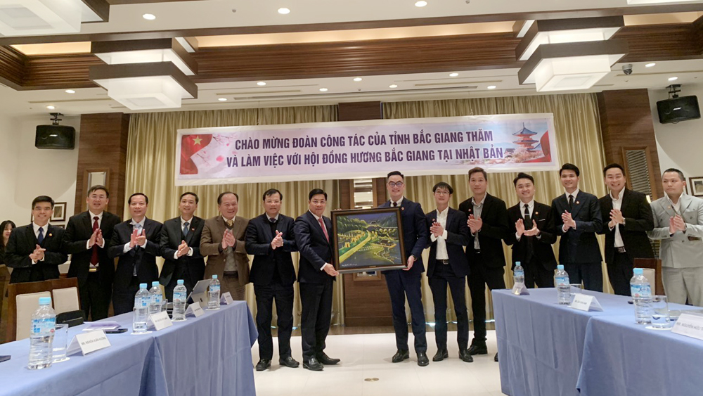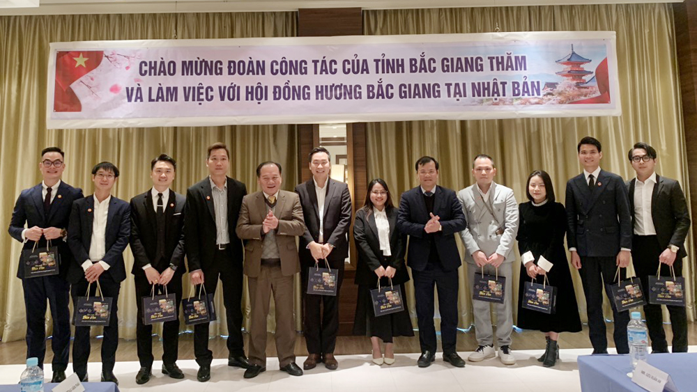 Bắt đầu chuyến thăm và làm việc tại Nhật Bản, sáng 18/3, sau khi xuống sân bay, Đoàn công tác đã làm việc với Hội đồng hương Bắc Giang tại Nhật Bản, gặp gỡ cộng đồng người Bắc Giang đang sinh sống, làm việc tại đây.