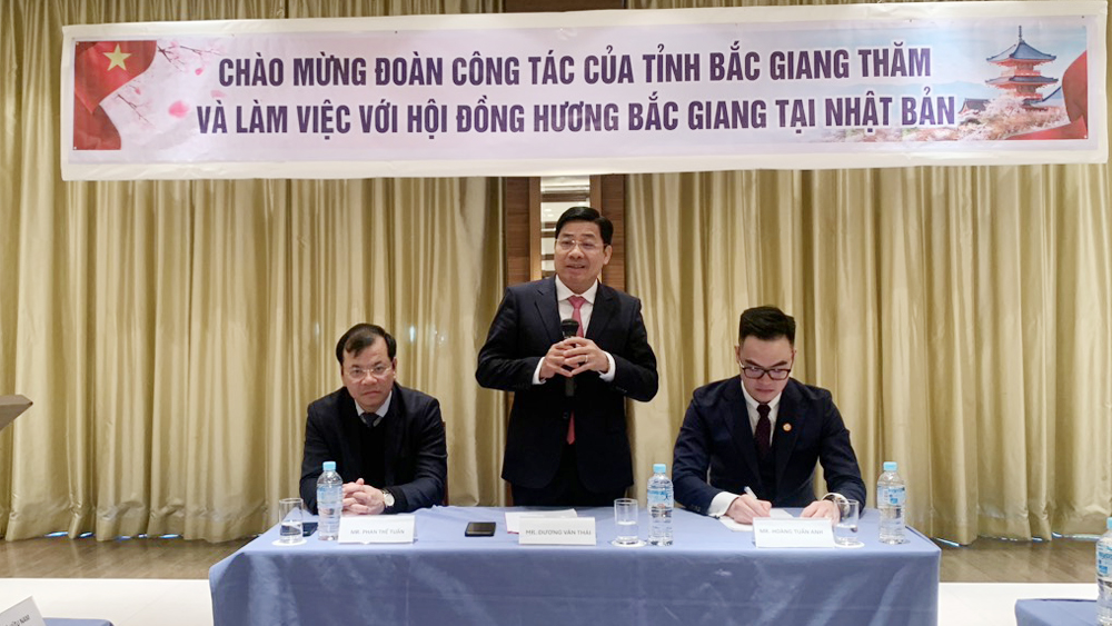 Thay mặt khoảng 7.000 người con quê hương Bắc Giang đang sinh sống, học tập, lao động, sản xuất kinh doanh, làm việc tại Nhật Bản, ông Hoàng Tuấn Anh, Chủ tịch Hội đồng hương Bắc Giang tại Nhật Bản vui mừng trước sự quan tâm của các đồng chí lãnh đạo tỉnh, Liên hiệp Các tổ chức hữu nghị tỉnh đã dành tình cảm cho cộng đồng người Bắc Giang ở Nhật Bản.