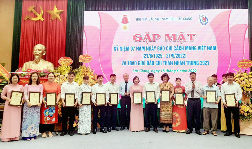 Tại lễ kỷ niệm, đồng chí Lê Thị Thu Hồng đã trao Cờ thi đua xuất sắc năm 2021 của Hội Nhà báo Việt Nam cho Hội Nhà báo tỉnh Bắc Giang. Đồng chí Mai Sơn trao Bằng khen của Chủ tịch UBND tỉnh cho nhóm tác giả: Thu Hà, Bích Ngọc, Ngọc Linh,  Hữu Tuấn (Đài Phát thanh và Truyền hình tỉnh) với tác phẩm "Ngân hàng bò cho người nghèo, liệu có còn phù hợp?" đoạt giải C giải báo chí Quốc gia lần thứ XV năm 2020.