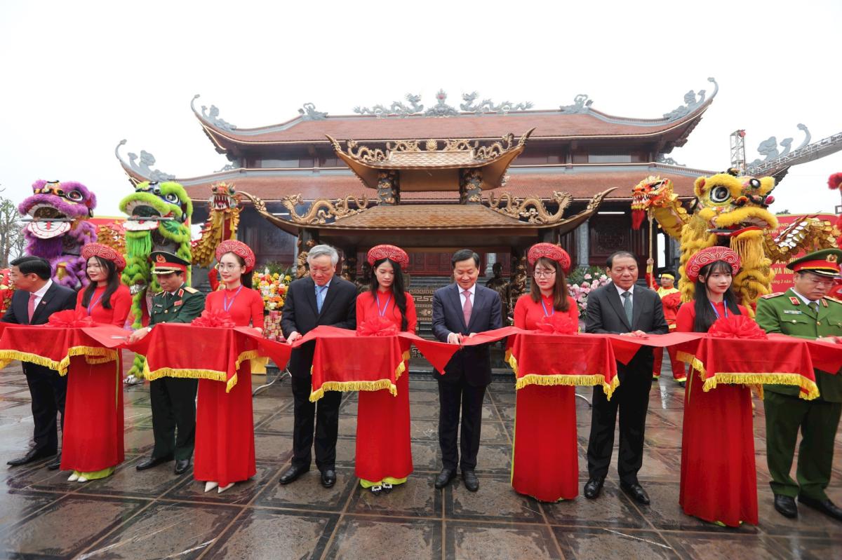 Các đại biểu cắt băng khánh thành Đền thờ Hoàng Hoa Thám