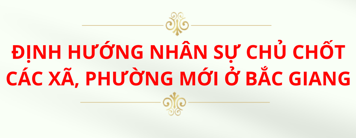 bientapvien gửi vào T3, 05/13/2025 - 16:43Ngày 8/5/2025, Ban Thường vụ Tỉnh ủy Bắc Giang ban hành Kết luận số 359-KL/TU về việc hướng dẫn xây dựng phương án nhân sự cấp ủy và định hướng bố trí, sắp xếp cán bộ lãnh đạo, quản lý cấp xã thành lập mới. Trong đó, định hướng bố trí cán bộ lãnh đạo, quản lý xã, phường thành lập mới như sau: