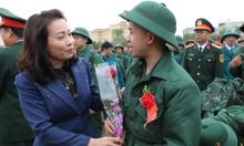 Phó Bí thư Thường trực Tỉnh ủy Nguyễn Thị Hương động viên tân binh huyện Lạng Giang lên đường nhập ngũ