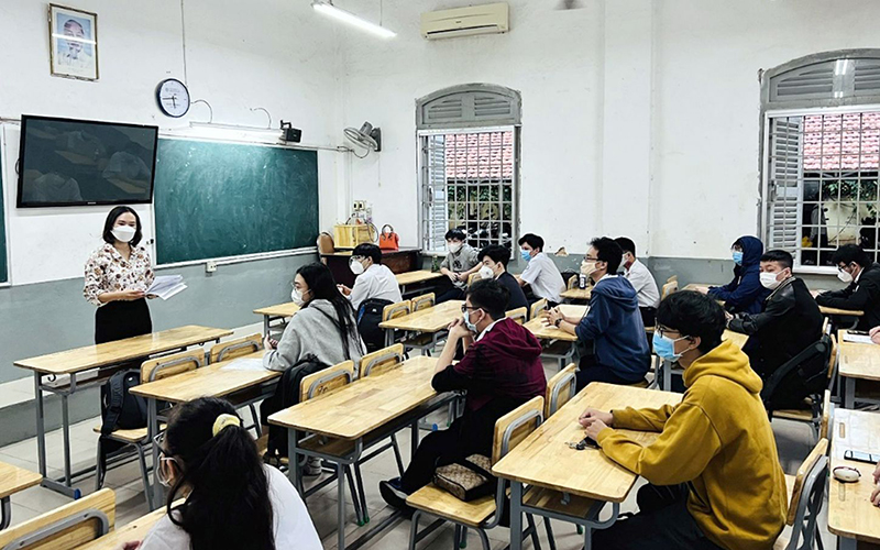 Giờ học trực tiếp của học sinh Trường THPT Marie Curie quận 3 (thành phố Hồ Chí Minh). Ảnh: THỦY TIÊN