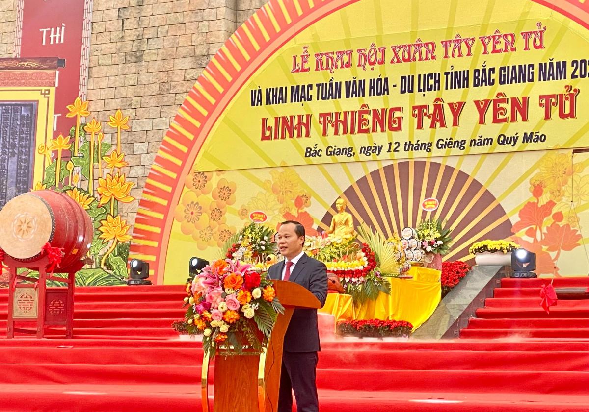 “… Lễ hội Xuân Tây Yên Tử và Tuần Văn hóa - Du lịch tỉnh Bắc Giang năm 2023 với chủ đề “Linh thiêng Tây Yên Tử” có nhiều hoạt động phong phú, đa dạng, nhằm tiếp nối, phát huy truyền thống văn hóa tốt đẹp của cha ông, tuyên truyền, quảng bá sâu rộng hình ảnh vùng đất, con người Bắc Giang được hình thành, bồi đắp trong suốt chiều dài lịch sử dân tộc và những giá trị văn hóa, di sản đặc sắc của Phật giáo Trúc Lâm Yên Tử gắn với “Con đường Hoằng dương Phật pháp” của Tam Tổ Trúc Lâm đến đông đảo các tầng lớp Nhân dân, du khách trong nước và quốc tế, góp phần bảo tồn và phát huy giá trị di sản văn hóa Bắc Giang, gắn với phát triển du lịch bền vững và phát triển kinh tế - xã hội trên địa bàn tỉnh; phấn đấu sớm đưa du lịch trở thành ngành kinh tế quan trọng và ngày càng chiếm tỷ trọng cao trong cơ cấu kinh tế của tỉnh.”