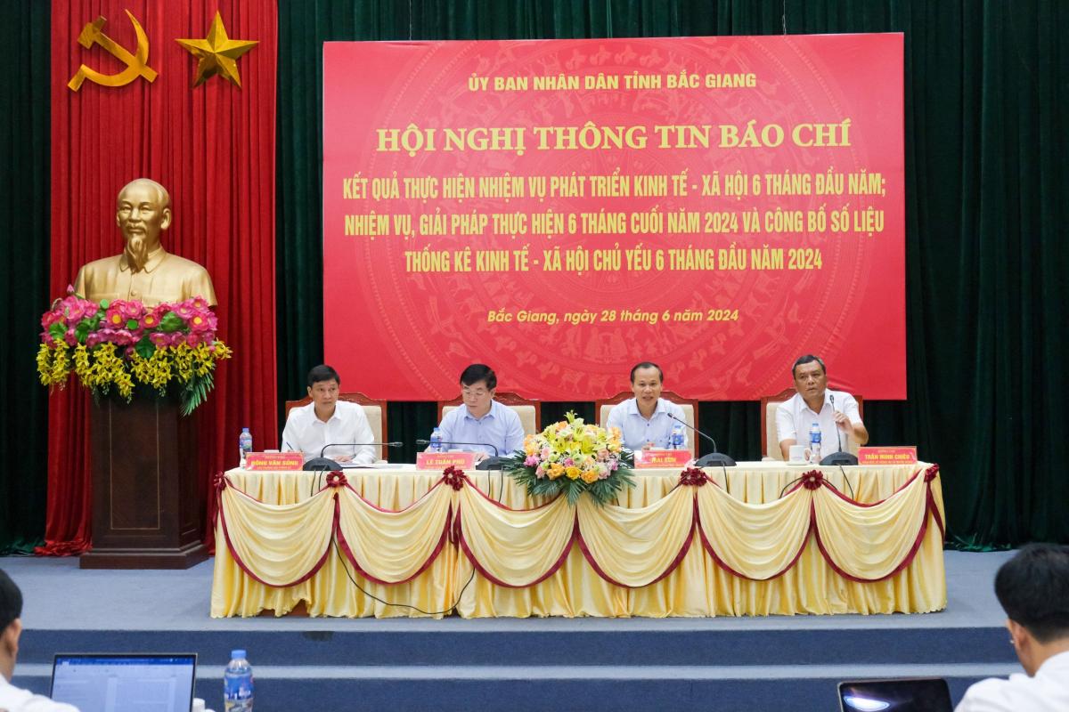 6 tháng đầu năm 2024, tăng trưởng kinh tế (GRDP) tỉnh Bắc Giang đạt 14,14%, tiếp tục dẫn đầu cả nước. Đây là nội dung được thông tin tại Hội nghị thông tin báo chí Kết quả thực hiện nhiệm vụ phát triển kinh tế - xã hội 6 tháng đầu năm, nhiệm vụ, giải pháp thực hiện 6 tháng cuối năm 2024 và công bố số liệu thống kê KT-XH chủ yếu 6 tháng đầu năm 2024 dưới sự chủ trì của đồng chí Mai Sơn, Ủy viên BTV Tỉnh ủy, Phó Chủ tịch thường trực UBND tỉnh. Đồng chủ trì hội nghị có Giám đốc Sở Thông tin và Truyền thông Trần Minh Chiêu; Chánh Văn phòng UBND tỉnh Lê Tuấn Phú; Cục trưởng Cục Thống kê tỉnh Đồng Văn Sủng. Tham dự hội nghị có lãnh đạo các sở, cơ quan thuộc UBND tỉnh; cơ quan trung ương đóng trên địa bàn và UBND các huyện, thành phố; đại diện lãnh đạo và phóng viên các cơ quan báo chí của tỉnh; phóng viên báo chí Trung ương và Trung tâm VHTT&TT các huyện, thành phố.